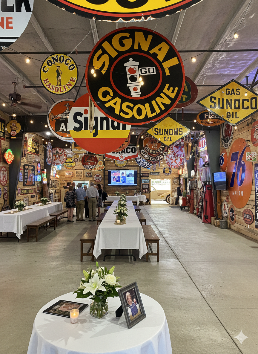 Consider setting up photos, memorabilia, and decorations that highlight significant moments in the deceased's life. At Sparks Museum, you might use our vintage backdrops to enhance the ambiance while telling a beautiful story through imagery.