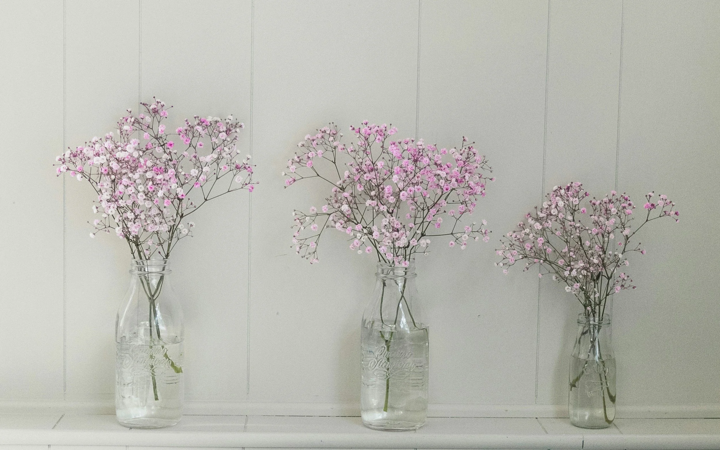 Spring = cherry blossoms, tulips, and daffodils. Summer = roses, herbs, and lush greenery.