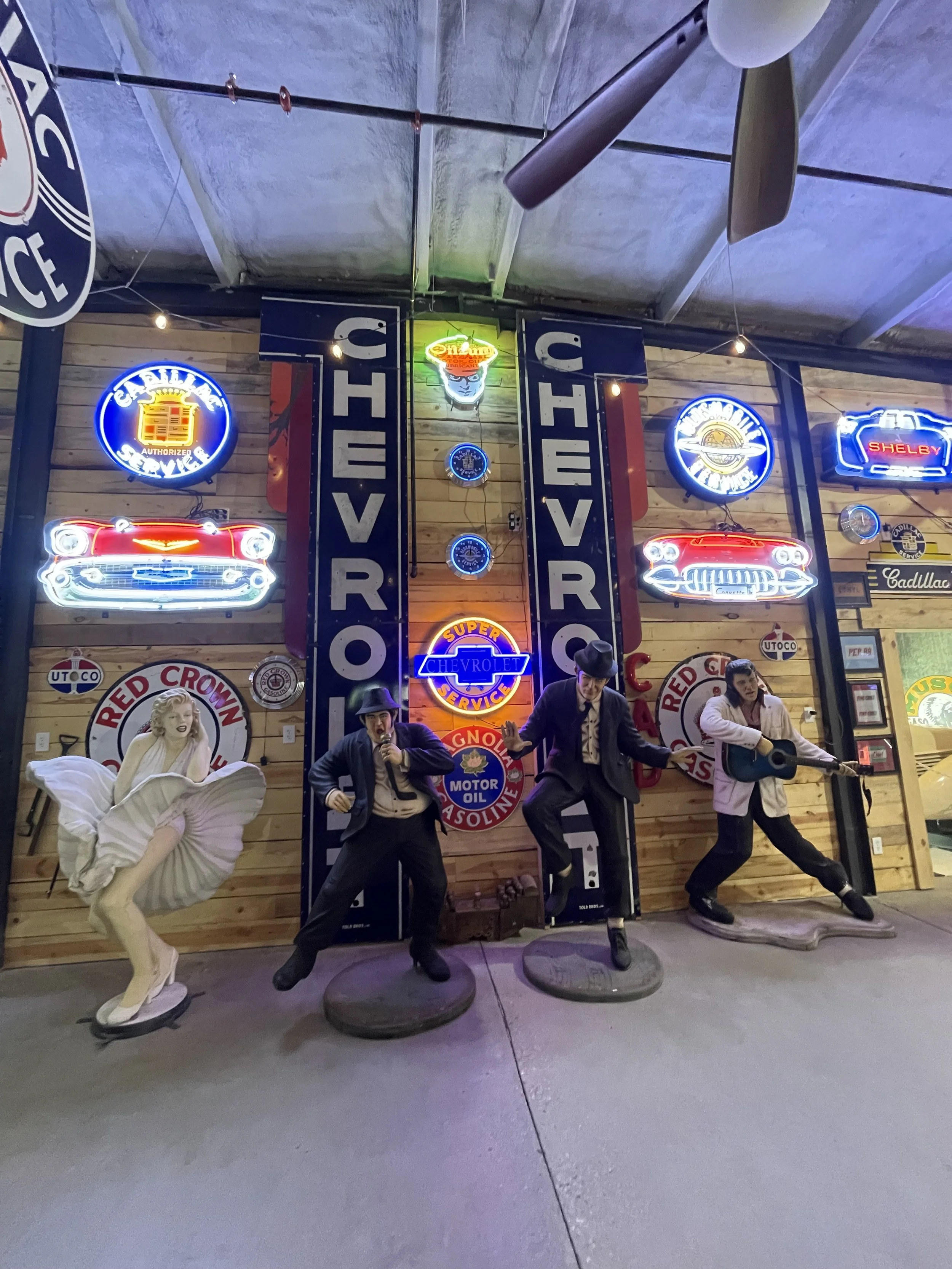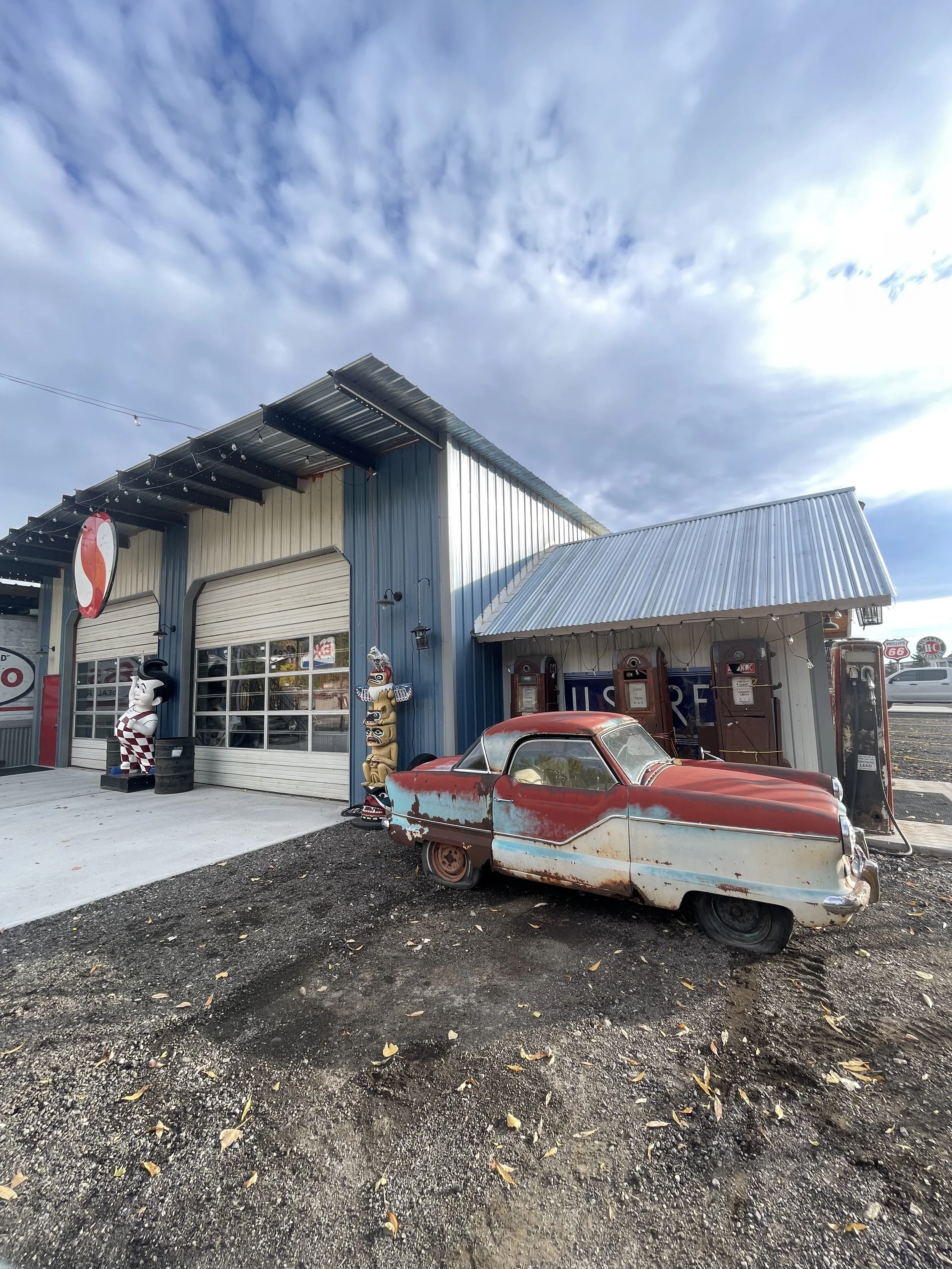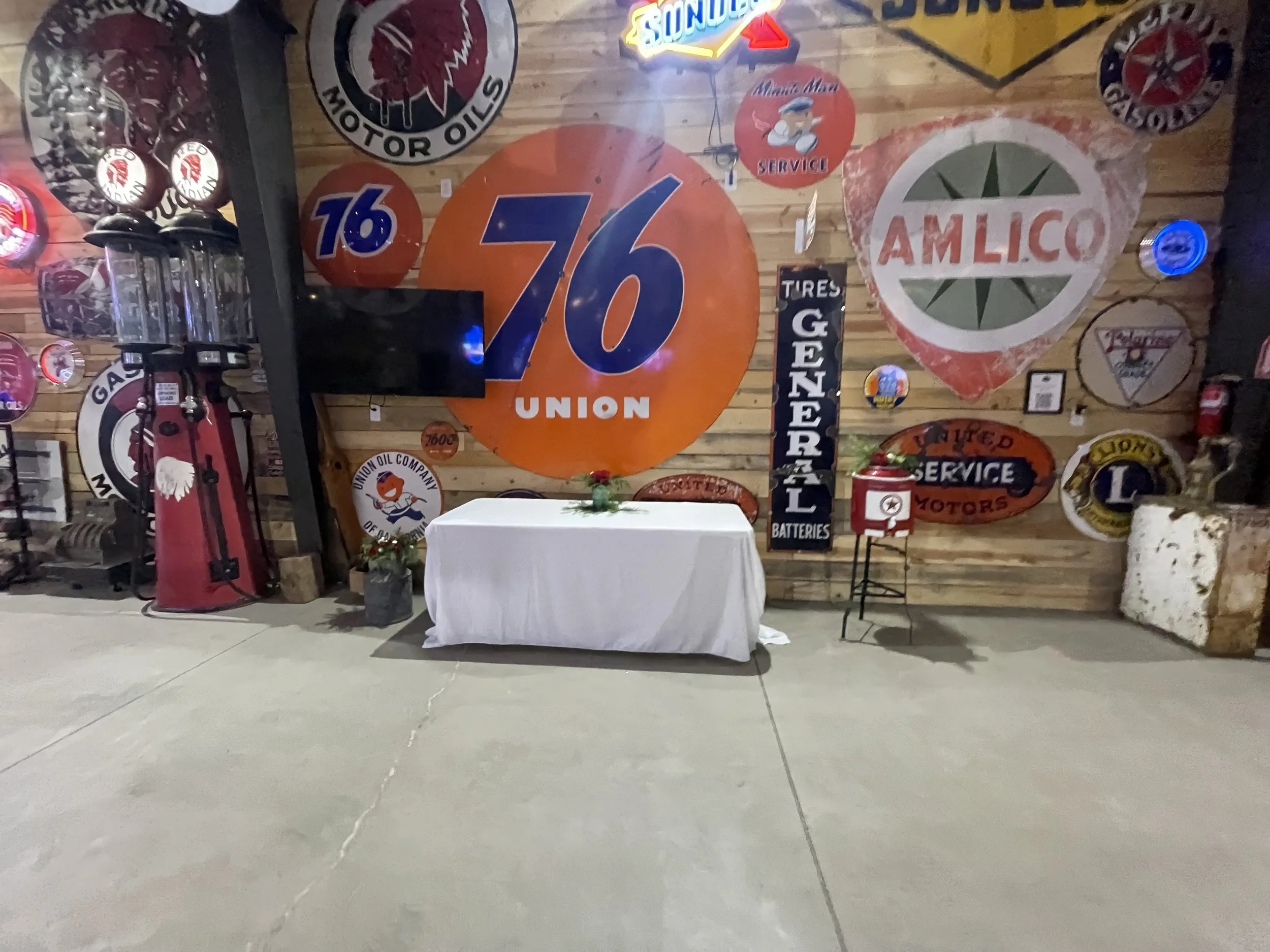 Thinking back on 2019 I remember I had contacted Provo, City about putting a building on a lot we had in Provo that currently had long term RV parking on it. We had acquired a steel building and were curious about putting it up on the empty portion of the lot. Because my father, Sparky is a collector of all things great… mostly Porcelain gas signs, gas pumps and antique cars I thought it a great idea to “house his collection”inside this building. We however were told NO by the city that they had no sewer available connecting to the lot and would not have for years to come. Because I am my fathers daughter and I don’t take NO for an answer I continued asking HOW it could be done. I continued going from person to person in hopes a creative mind could help me. I was told no repeatedly. Eventually, a year or so later we came up with an agreement that would work and the city agreed which would allow us to build bathrooms. What is a lot good for if you are unable to have a bathroom on it???? We had to raise the ground many feet, build our bathrooms up 4 more feet, get water, electricity and dig our own lift station that takes our sewage and lifts it to the Cities sewer line more than a mile up the road. We made it happen and up the structure went. Our bathrooms creatively built inside semi trailers for a unique and retro look. We purchase bus lifts for handicap access to the bathrooms since they are all off the ground. These are just a few fun features of the wedding event space located in Provo that houses our Petroliana museum.