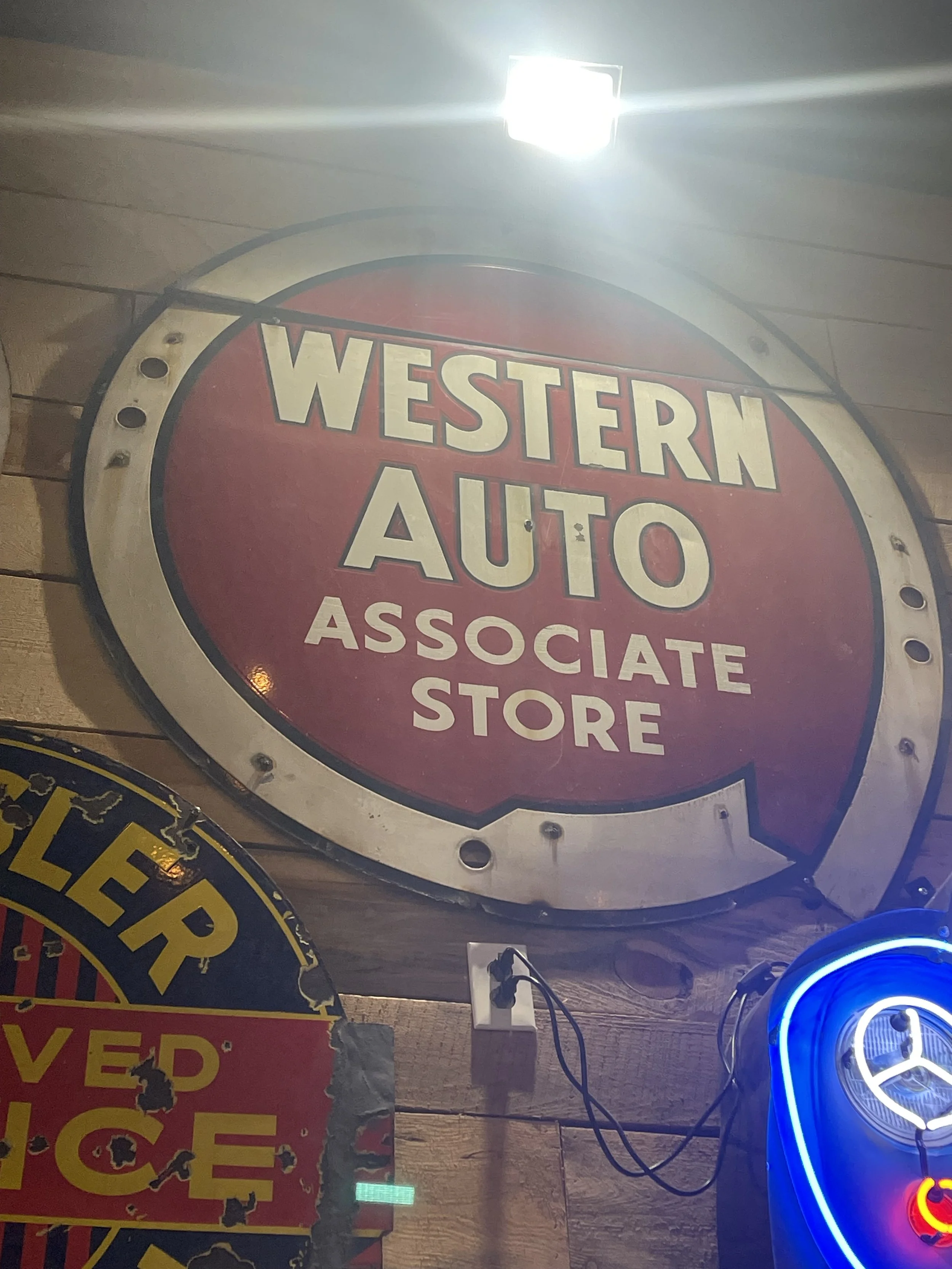 This sign also came from Gary Phillips who got it from an auction. This is the first company that started a franchise. They sold auto parts and sold them to others to sell. They were the supplier and years ahead of there time in the franchise idea. This also came from Indianola, Iowa.